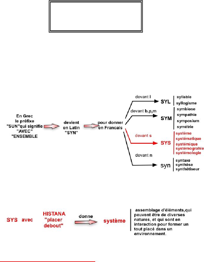 A la page « un historique de la notion de système » nous présentons le schéma étymologique des mots d’un usage courant de notre langue qui commencent par les syllabes